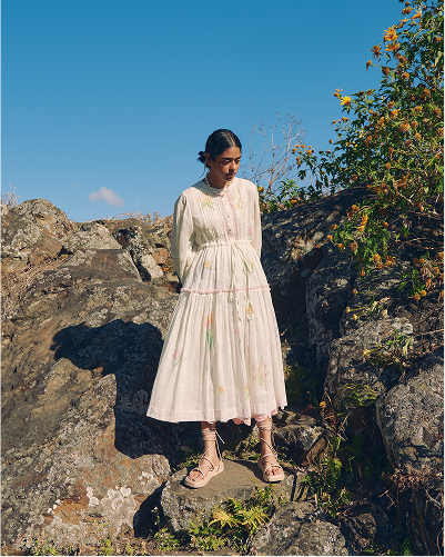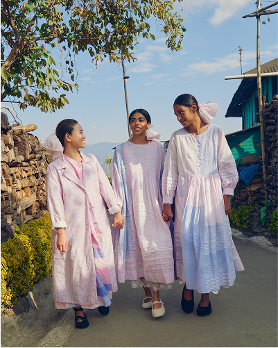 To look at far off landscapes for a sweet escape, to inquire about the way people live, love and long, are elements embedded at the core of brand Eka. For spring-summer ‘24, our line-up of saccharine-toned nostalgic dresses find familiarity in the spiraling lanes of Kohima. The city’s terracotta walls, dream-blue sky, whisper-sheer clouds, kind and warm-hearted people, form the backdrop for a spring-summer ‘24 collection of watercolour layers.